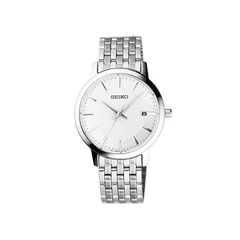 其精緻簡約的錶盤也是一大賣點,純色系的素面錶盤,外圈有亮銀丁字時間、3點鐘方向有日期時間功能,亮銀的細長指針更是點綴其中,再配上圓潤的錶框設計與貼手設計的多節雙色薄型錶帶,造型優雅的經典SEIKO錶款,絕對是您最佳的選擇!