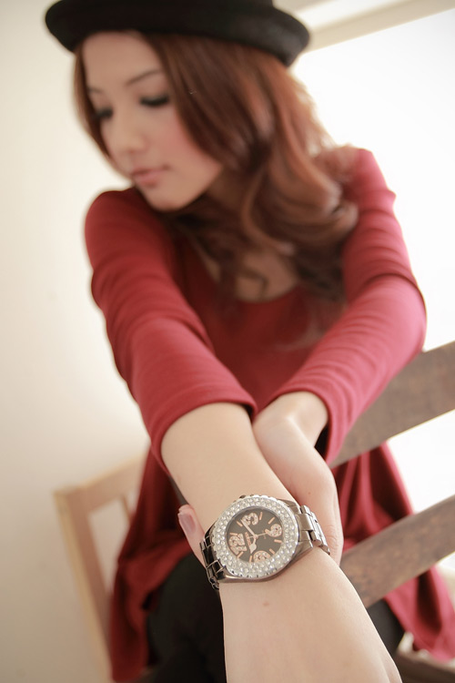 ※商品出貨時秒針都有設定暫停,請把手錶右側龍頭處按下(可運轉) ,即可正常使用