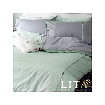 LITA麗塔(繽紛玩色-薄荷)加大四件式純棉兩用被床包組