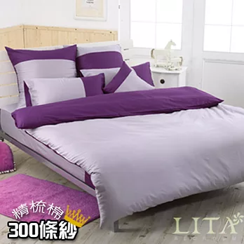 LITA麗塔(魔術方塊-礦紫x桑椹)加大四件式純棉薄被套床包組