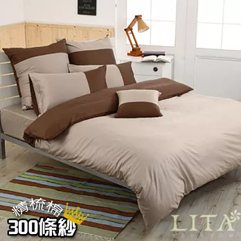LITA麗塔(魔術方塊-杏色x焦茶)雙人四件式純棉薄被套床包組