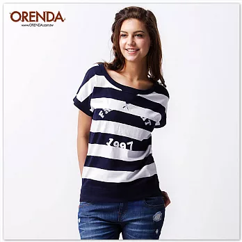 ORENDA 百搭寬條紋上衣L藍白條充滿夏日氣息的寬橫條紋具有視覺顯瘦效果,領口處拼接三角形貼布,寬鬆版型可輕鬆穿出帥氣男孩風!