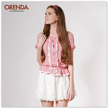ORENDA 公主袖條紋上衣M紅色充滿設計巧思的必備單品!採用低調光澤條紋面料,胸前拼接荷葉與蕾絲,多層次下擺與蕾絲織帶拼接,隨意抽繩打個蝴蝶結,展現鄰家女孩的親和魅力