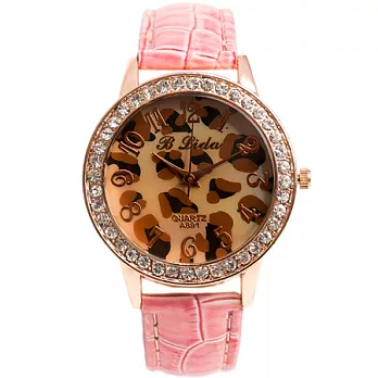 Watch-123 光芒盛開-野性聚焦華麗水鑽腕錶-粉紅色帶